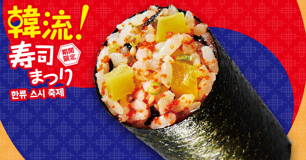 食べて韓国気分になれる、小僧寿し流の『韓流!寿司まつり』!毎回ご好評いただいております「キンパ」など、このフェアだけの特別メニューをご用意しました!!