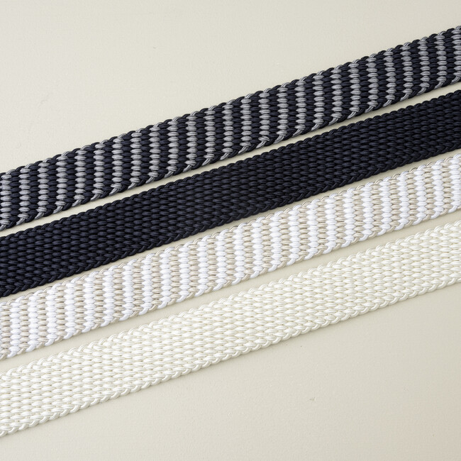 カジュアルシーンにおける普段使いはもちろんのこと、帯幅が35mmとしっかりとしていることによりゴル フシーンでも活躍が期待できます。カラーは「NAVY」「WHITE」「NAVY×GRAY(ストライプ)」 「WHITE×BEIGE(ストライプ)」の 4 色展開。