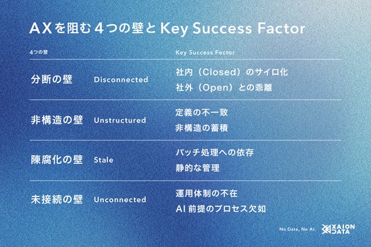 AXを阻む要因はデータ構造にあり、本稿ではそれを「4つの壁」として整理します。