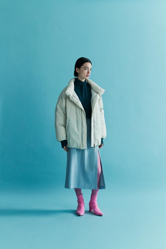 ゆとりのあるアームホールやバストの設計、裾の両サイドに設けたファスナー開閉のスリットなど、着こなしの幅を広げる工夫がある一方で、保温性を高めるフィット感にもこだわりました。