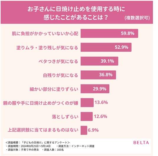 今回のアンケートを通して、子どもの日焼けに対する親の意識や、親が子どもへ日焼け止めを使用する際に感じていることが明らかになりました。
