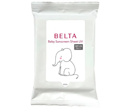 女性のライフステージ変化をサポートしてきたBELTAでは、子育て中の方々の声をもとにシートタイプで赤ちゃんに優しい日焼け止め「ベルタベビー日焼け止めシートUV」を販売しています。