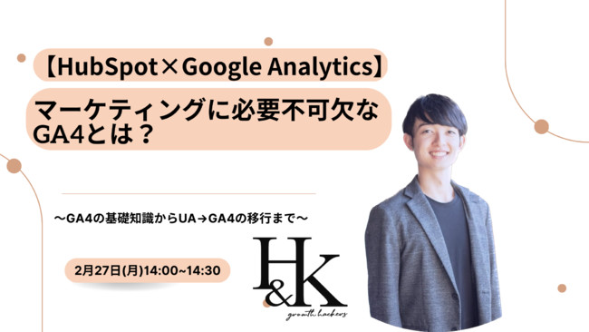 ■企業のマーケティング、DX化などの支援を行う株式会社H&K(本社:神奈川県横浜市、支店:東京都新宿区、代表取締役CEO:安藤弘樹)が、2023年2月27日(月)に、「マーケティングに必要不可欠なGA4とは?」について語るウェビナーを開催することとなりましたので、ご案内いたします。