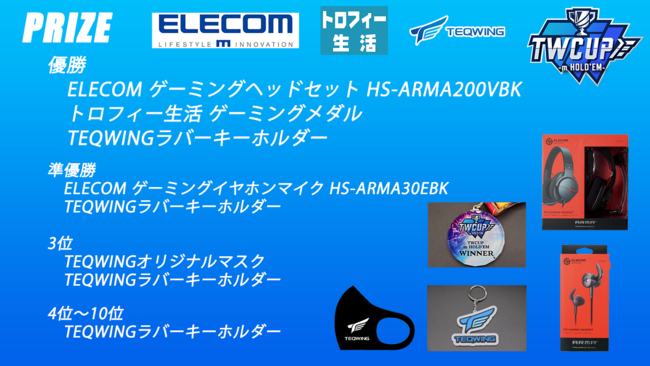 賞品はゲーミングヘッドホンとゲーミングメダルとTEQWINGオリジナルグッズ!上位10名は「TWCUP」の限定称号をGET!