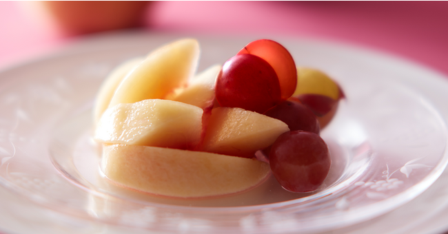透き通るような白さとあふれる果汁と甘さが特長の桃「冬美白(とうびはく)」と、甘味が強くとてもジューシーで果肉が滑らかなぶどう「紫苑(しえん)」を盛り合わせた一品です。お気軽にスタッフまでご注文ください。(注文の際は別途料金となります。)