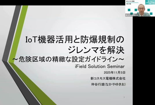 マルティスープ株式会社様が主催する「iFieldソリューションセミナー」は、位置・空間情報技術を含むシステムが企業や社会にどんなインパクトを与えるのかを考えていくイベントです。当社は、日本の防爆の技術指針の改訂等に関わってきた仲谷 行雄が防爆エリアでのIoT機器活用のジレンマを解決する経済産業省のガイドラインについて解説しました。