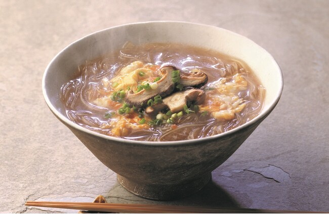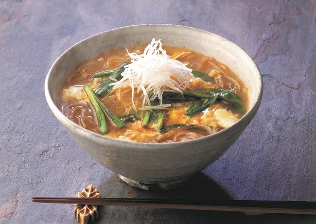 一般的な緑豆由来の麺ではなく、北海道産じゃがいもと九州産さつまいもを使用することで、もっちりと弾力のある食感と、とぅるんとした喉ごしをお楽しみいただけます。フォーともうどんとも違う、新感覚の食感です。
