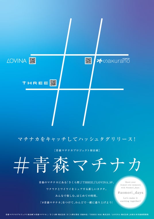 みんなの「青森マチナカ」「みなとまち・あおもり誕生400年」という歴史の大きな節目を迎える青森市。その「まち」の中心として長く愛されてきた青森駅前エリアの魅力を、もっともっと多くの人に知ってほしい!そんな想いから、この度、さくら野・THREE・LOVINAの3つの商業施設が手を取り合い、「青森マチナカプロジェクト」を立ち上げました。