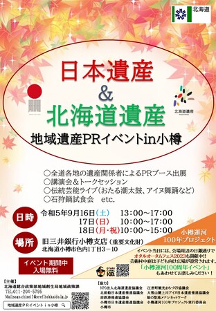 3連休期間中、日本遺産と北海道遺産の体験型PRイベントを実施します