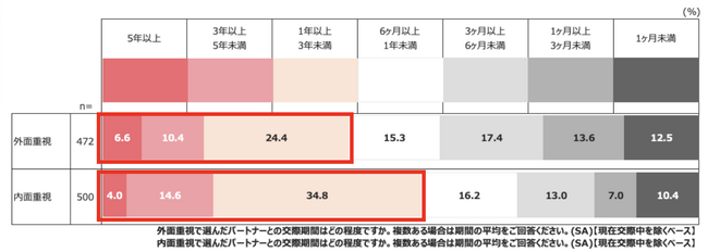 結果2:パートナー選びにおいて、外面重視・内面重視かにより交際期間に大きな差