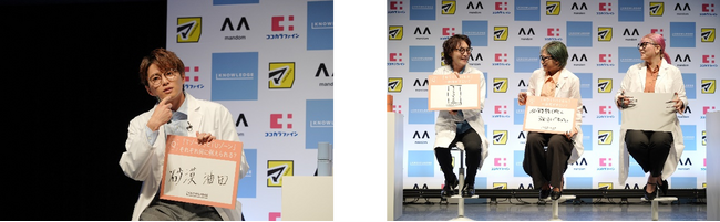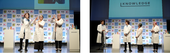 その後、俳優の白洲迅さんとお笑い芸人トリオのぱーてぃーちゃんが、人生初の“知的な”白衣姿でご登壇。スキンケアに関するトークセッションでは、白洲さんが、「30代に入り、よりスキンケアに気を遣うようになりました、撮影で日に焼けたなとか、乾燥したなと感じた日はパックしてみたり、あとはスキンケアかわからないですけど、お風呂で毎日冷水を浴びますね、肌と心を引き締めるために」と意外な日課を明かすと、信子さんから「それ、滑った後の芸人がやることですよ!」と鋭いツッコミを入れられていました。