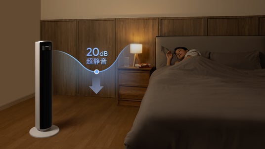 DCモーターの採用により、運転音は最小20dBと非常に静か。最小消費電力は約4Wで、夜間の長時間使用でも電気代を気にせず快適に過ごせます。