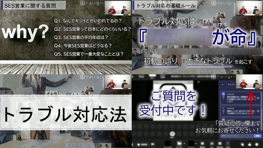 SES営業の方が悩みがちな「トラブル時の対応方法」や「成果を出すコツ」などについて、弊社が蓄積してきたノウハウと共に解説!参加者の皆さまからの質問にもリアルタイムでお答えいたします!