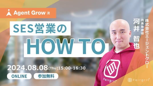 株式会社エージェントグロー(本社:東京都港区、代表取締役:河井智也/以下、「当社」)が毎月開催しているSES企業様を対象にした無料オンラインウェビナーにつきまして、2024年8月8日の開催が決定いたしました。