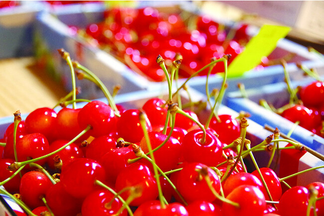 直売所などでしか販売していない「聖籠産さくらんぼ」が期間限定で表参道ネスパスに! 見た目の美しさはもちろん、みずみずしい果肉と、果肉にギュッと詰まったバランスのとれた甘みと酸味は、まさに「食べる宝石」の名にふさわしい逸品です。