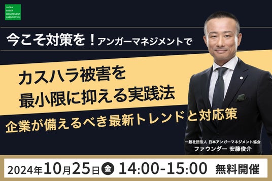 株式会社レビックグローバル(本社:東京都港区/代表取締役社長:柏木理)が運営する一般社団法人日本アンガーマネジメント協会(所在地:東京都港区)は、ファウンダー安藤俊介の登壇による「今こそ対策を!アンガーマネジメントでカスハラ被害を最小限に抑える実践法~企業が備えるべき最新トレンドと対応策~」と題した無料オンラインセミナーを開催いたします。