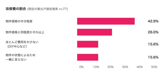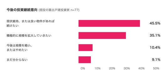 なお、本リリースで「現役の築古戸建投資家」と表記する場合は、アンケート上「現在、投資・所有している」と回答した層(n=77)を指します。