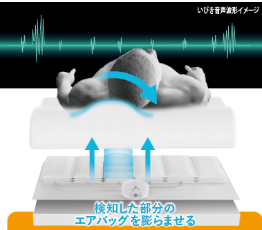【特長】・いびきを検知しエアバッグで頭の向きを変える