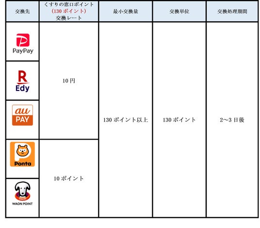 株式会社くすりの窓口(本社:東京都豊島区、代表取締役社長:堤 幸治、以下「当社」)が運営する電子お薬手帳アプリ「EPARKお薬手帳」(以下「当アプリ」)の利用で貯まる「くすりの窓口ポイント」の交換先が、amazonギフトカード、Vポイント、dポイントなどから新たに5つのポイント交換先が追加されましたのでお知らせいたします。