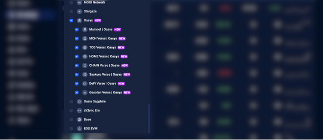 また、DappRadarのフィルター機能を使用すると、Oasysの全てのゲーム/DappsをVerse毎にフィルタリングすることも可能です。