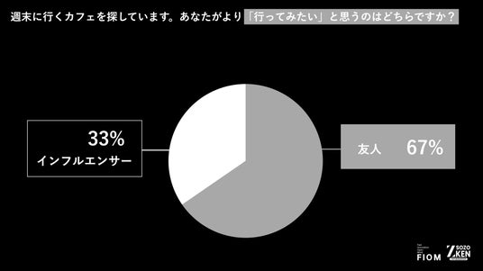 「週末に行くカフェを探している」場合、より参考にしたい意見は「インフルエンサー」(33%) よりも「友人」(67%) が圧勝。また、「新しいファンデーションの購入」においても「インフルエンサー」(32%) に対して「友人」(68%) が圧倒的に支持されており 、身近な等身大のレビューが最終的な行動決定に強く影響しています。
