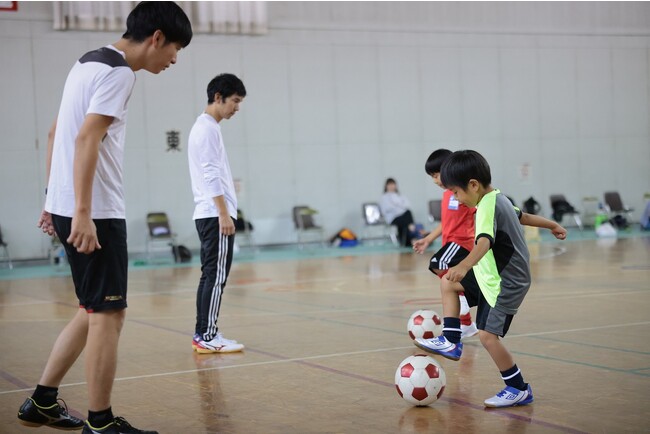 小林正信くん(6歳)は、「上手にボールが蹴れてうれしかった」と大喜びし、正信くんのお母さんは、「普段は、あまり運動しないので、たくさんの子どもたちと一緒にスポーツを楽しめる場は貴重だった」と話してくれました。また、中村茉奈さん(8歳)は、「野球のバットの持ち方を初めて知った」と新たな発見をしていました。茉奈さんのお父さんは、「基本的な運動技術を学べたので、非常に有意義な時間だったと思います」と感謝の気持ちを頂きました。