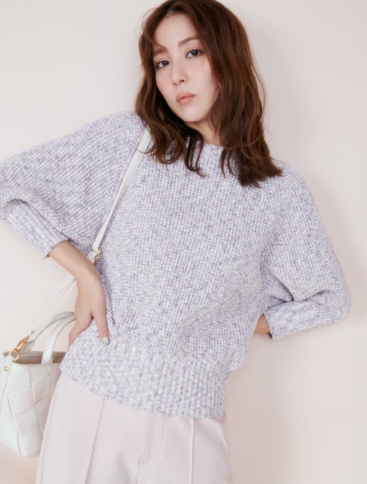 春物の第1弾となる今回のカタログでは、まだ寒さの残る時期に取り入れたくなる春のスペシャルな素材にフォーカス。ツイードやメランジ、ジャカード、ファンシーヤーンなど表面感で魅せる旬なマテリアルを、優しい配色やデザインでクリーンなムードに落とし込んでいます。