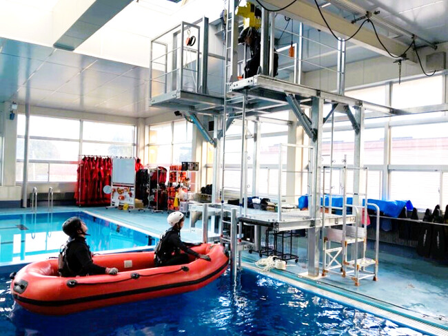 開所に向けて実施しているデモ訓練の様子(作業員向け基本安全訓練の海上生存技術訓練)