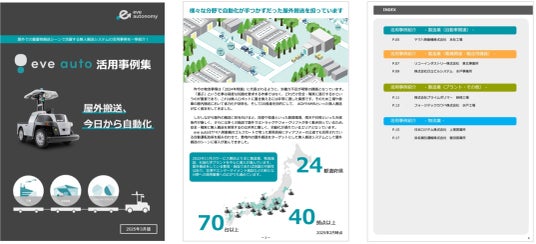 株式会社eve autonomy(イヴ・オートノミー、静岡県磐田市、代表取締役CEO:星野亮介、以下「eve autonomy」)は、2025年2月27日に創業5周年を迎えました。この節目を記念し、当社の自動搬送サービス「eve auto」の導入事例をまとめた『eve auto活用事例集』を、本日より公式ウェブサイトにて公開しました。