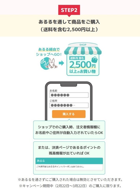 2.あるるを通して商品をご購入(1つの商品で送料を含む税込み2,500円以上のお買い上げに限ります)