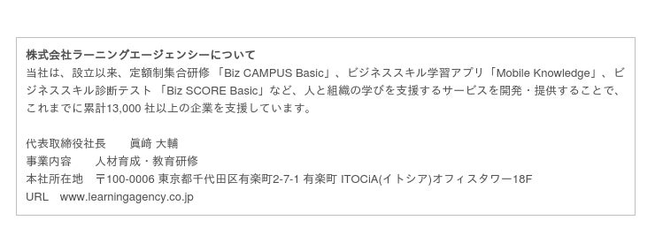 業界初*の定額制の社員研修「Biz CAMPUS Basic」を提供する株式会社ラーニングエージェンシー(旧トーマツ イノベーション株式会社、本社 東京都千代田区、代表取締役社長 眞崎大輔)は、当社が開催した研修(会場型・オンライン型)を受講した2021年度入社の新入社員4,535人を対象にキャリアに対する意識調査を行い、その傾向をまとめました。 * 2010年3月東京商工リサーチ調べ