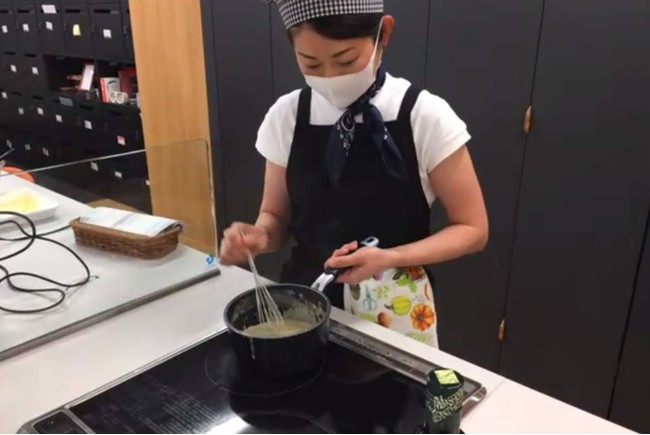 カジー本部のお料理講師によるお料理の生ライブ!今回のテーマは、「カジーにとってメモリアルなお料理」。創業や上場にまつわるエピソードのある「バーニャカウダ」と「ほたてのポワレ」を、おいしく火を通すコツや、味付けのひと手間などのポイントを解説しながら実際に調理しました。また付け合わせとして「ビシソワーズ」と「冷製パスタ」の2品もプラス。たった30分で生み出されたイタリアンコースを、代表取締役の2人が試食しました。