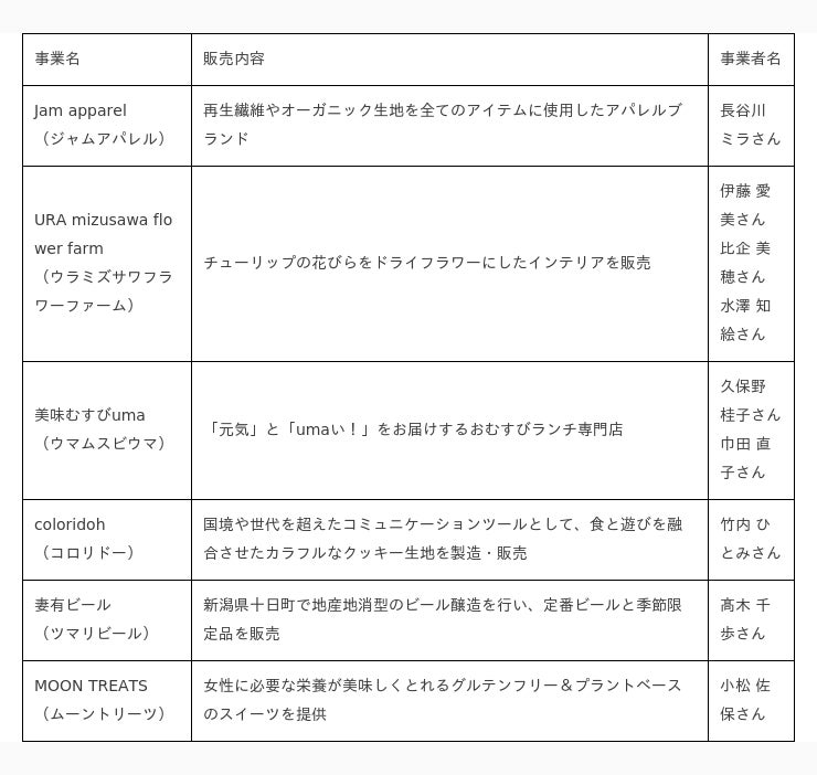 内容 女性事業主による実店舗出店および有識者によるトークセッション