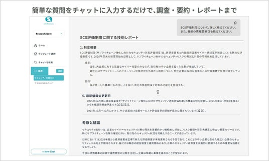株式会社ソフトクリエイト(本社:東京都渋谷区/代表取締役社長:林 宗治、以下 ソフトクリエイト)は、企業・団体向け生成AIサービス「Safe AI Gateway」に、新たに「Research Agent」機能を追加したことをお知らせいたします。