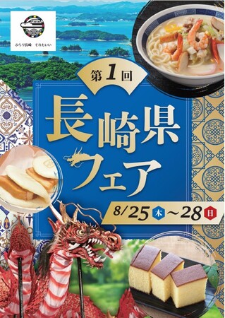 長崎県(本庁:長崎県長崎市、知事:大石賢吾)とイオン株式会社は、2013(平成25)年に、連携と協力に関する包括提携協定を締結しています。この協定をもとに、イオンリテール株式会社の主催により、長崎県の魅力を発信することによる誘客促進、県産品のブランド力向上及び販路拡大を目的として、8月25日(木)から28日(日)まで(一部店舗は26日(金)から)、埼玉・群馬・栃木・茨城県の「イオン」「イオンスタイル」44店舗にて「長崎県フェア」が初めて開催されます。