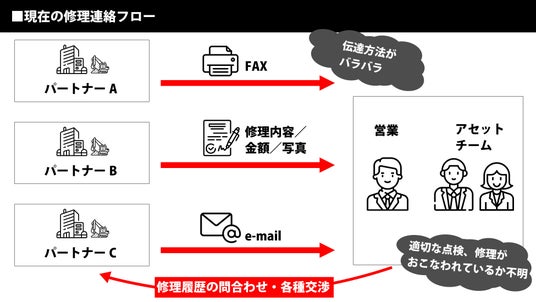 ・修理伝票の共有方法が一元化されていないため、修理情報の管理が煩雑