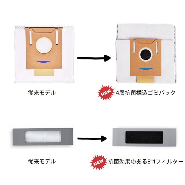 DEEBOT N10 PLUSは新しいE11レベル高性能抗菌フィルターと抗菌性能の高い4層構造抗菌ゴミパックを搭載します。