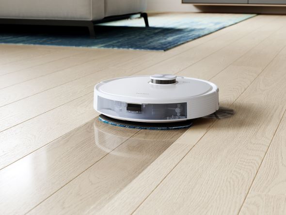 当社独自研究開発したOZMOモップシステムを搭載で、吸引清掃を行いながら同時に後方のモップで水拭きを行います。水量調節を4段階から専用アプリで選択可能なので均一にモップに水を浸透させながら水拭き清掃を行います。また水タンクは240mlの大容量で、最大約200分間の掃除に対応。