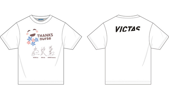 VICTASは、2年間に渡るコロナ禍を支え続けている看護師の方々の貢献に対し、心からの敬意と感謝を表したいという想いから、「サンクスナース」と協働しプロジェクトを実施。卓球男子3名による「共同の感謝メッセージ」と「サイン入りTシャツ」を日本看護協会と全国47都道府県看護協会、全国の医療機関に進呈する活動を行います。