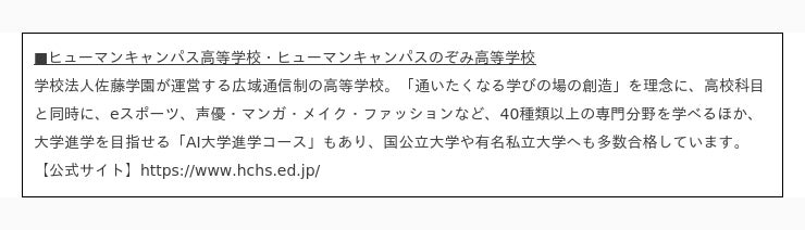 学校法人佐藤学園ヒューマンキャンパス高等学校・ヒューマンキャンパスのぞみ高等学校(以下、当校)は、一般社団法人 全日本動物専門教育協会と連携し、川や海に住む生物の知識や飼育管理を学べるアクア専攻を2024年4月に開講いたします。