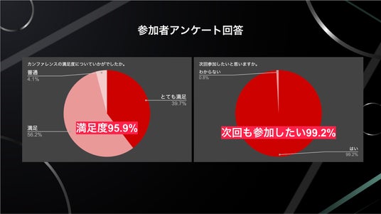 本イベントは参加者の皆さまから非常に高い評価をいただいており、参加者満足度は95.9%、次回参加希望率は99.2%と、いずれも来場者アンケートで非常に高い結果となりました。