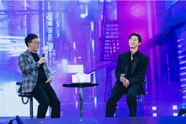 そして今回は本ライブイベントのMCである、古家正亨とのトークセッションを実施。 まず、「梨泰院クラス」が日本でも大人気だったことをお伝えすると、パクソジュンは「「梨泰院クラス」は新しい挑戦であり、成長できた作品でした。 今回のイベントを通じて日本のファンの方々、そしてドラマを見てくださった方々と久しぶりに会える時間ができて嬉しいです。」と作品を振り返りながら感想を述べました。