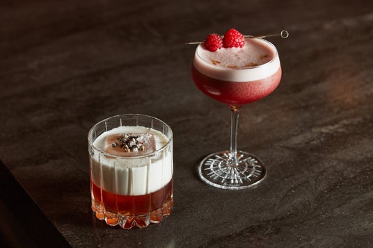 「Raspberry Reverie(ラズベリーレベリー)」は、ウィスキーサワーをベースに、ラズベリー、カシス、レモン、フランボワーズなどの爽やかな果実を使ったツイストカクテルです。バレンタインカラーの⾚⾊が、華やかで高揚感のある印象を与えます。素材本来の味を引き出すため、フレッシュなラズベリーをカクテルとガーニッシュに使用。また、ハーブティーで香り付けしたウィスキーが、深みのある味わいを生み出します。