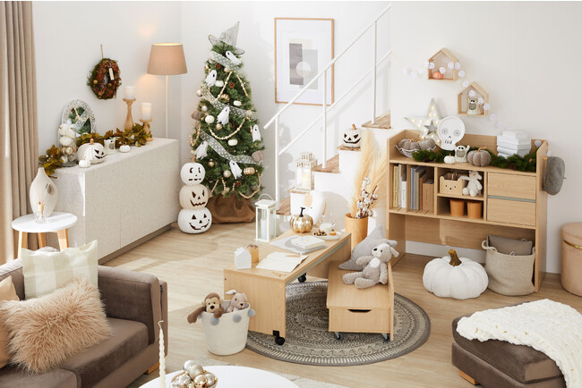 ◼️淡色でまとめたハロウィン仕様のリビングルーム