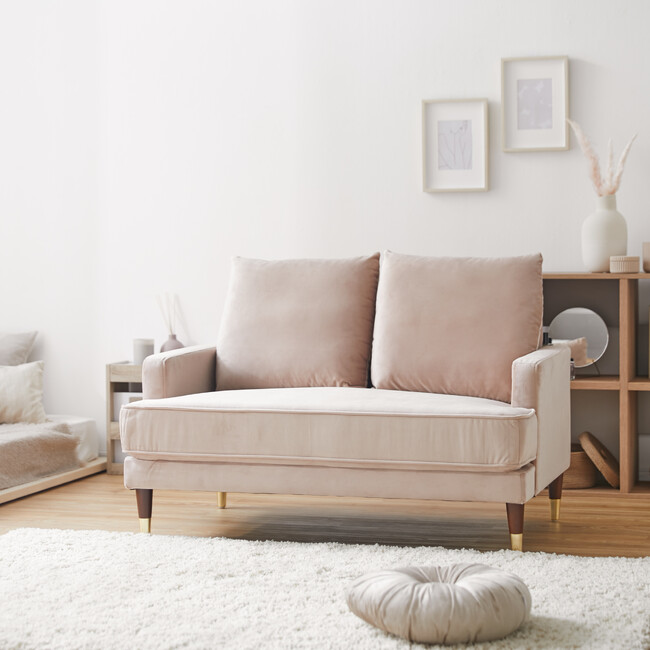 シックなベルベット調素材が生み出す、さりげない高級感。エフォートレスでいてリッチで大人可愛いコンパクトソファです。座面はふかふかとした弾力を持たせました。