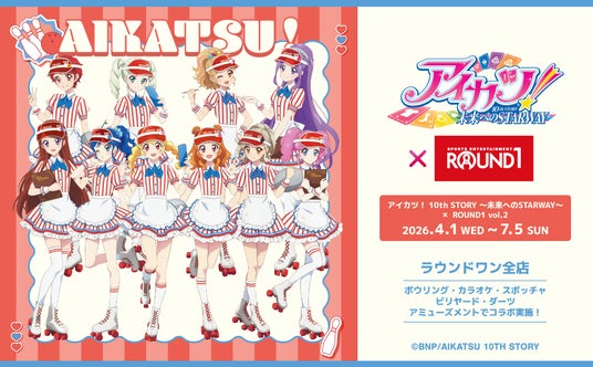 株式会社ラウンドワンジャパン(本社:大阪府大阪市)は、この度、2026年4月1日(水)から、「アイカツ! 10th STORY ~未来へのSTARWAY~×ROUND1 」コラボを実施いたします。