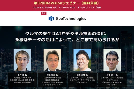 次世代モビリティ分野の情報交流・人的交流を促進するメディアプラットフォーム「ReVision Auto&Mobility」(運営:株式会社InBridges、東京都港区)は、11月26日(火)13:30から1時間50分間、WEBセミナー『クルマの安全はAIやデジタル技術の進化、多様なデータの活用によって、どこまで高められるか』を無料配信します。