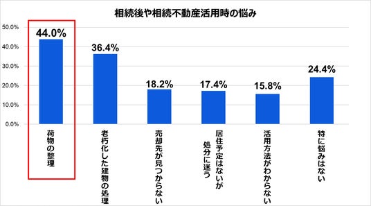また、“老朽化した建物の処理”(36.4%)といった不動産の状態による悩みも多い結果となりました。