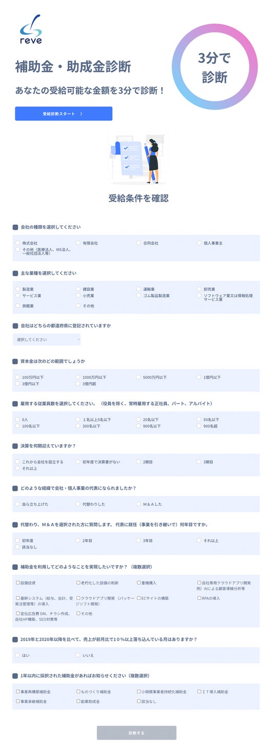 補助金・助成金診断サービス「補助金くん」シースリーレーヴサンプルページ