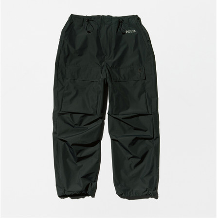 GORE-TEX INFUNIUMを使用した6ポケットパンツ。太腿のフラップポケットは、下部を縫いつけずに浮かせて空間があく仕様に。ヒップにはフラップアンドファスナーポケットを配置しました。ウエストはゴムで、スピンドルでフィッティング調節が可能。また、裾のスピンドルを絞ることで風の侵入を防ぐことができます。膝にタックを入れることで可動域を広げています。裏地には速乾性のあるメッシュを採用しました。